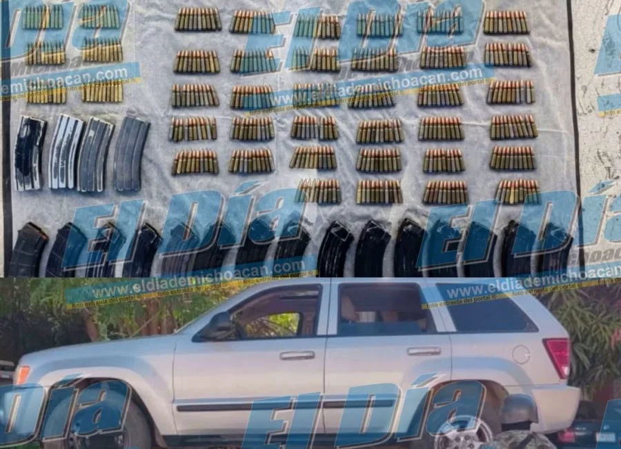 Los hechos sucedieron este viernes luego de recorridos que hiciera la tríada y localizara en las proximidades del poblado El Zurumutal -muy próximo a Acahuato- del municipio de Apatzingán, donde localizaron abandonada la camioneta Jeep Grand Cherokee color Gris UDC37479, la cual al ser revisada se localizó en su interior 19 cargadores y 420 cartuchos útiles de diferentes armas de fuego de grueso calibre, por lo que se aseguró.