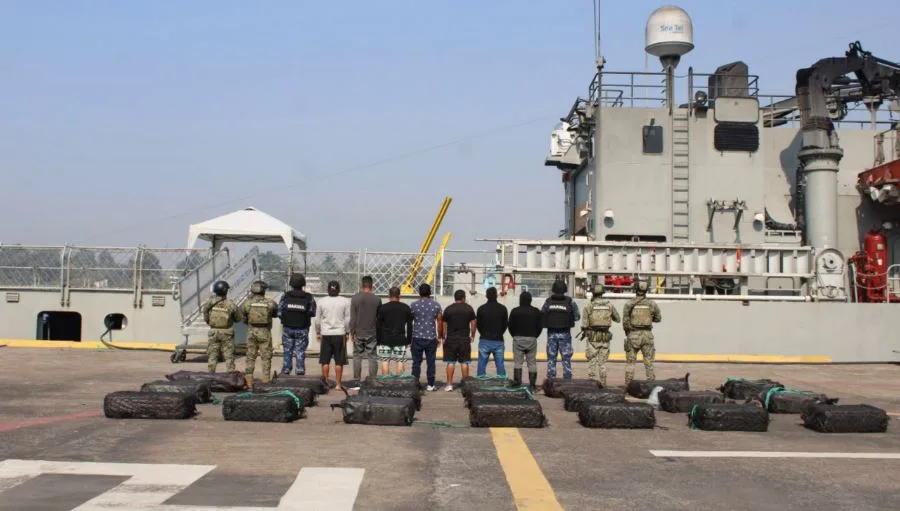 La acción operativa se registró aproximadamente 120 millas náuticas a (222 kilómetros) al Suroeste del puerto de Lázaro Cárdenas.