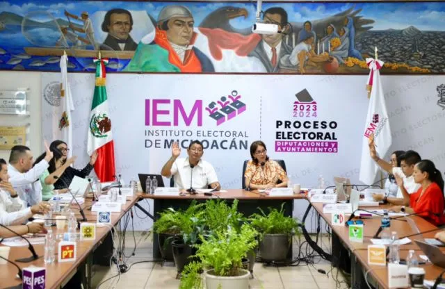 Morelia, Michoacán, 28 de abril de 2024.- Con la finalidad de garantizar los derechos de las mujeres y grupos en situación de vulnerabilidad a ser votados en igualdad de condiciones, el Consejo General del Instituto Electoral de Michoacán (IEM), en sesión extraordinaria urgente, aprobó el cumplimiento de la paridad de género en las vertientes vertical, horizontal y transversal, así como las acciones afirmativas en la postulación de planillas para Ayuntamientos para el Proceso Electoral Ordinario Local 2023-2024, presentadas por partidos políticos
