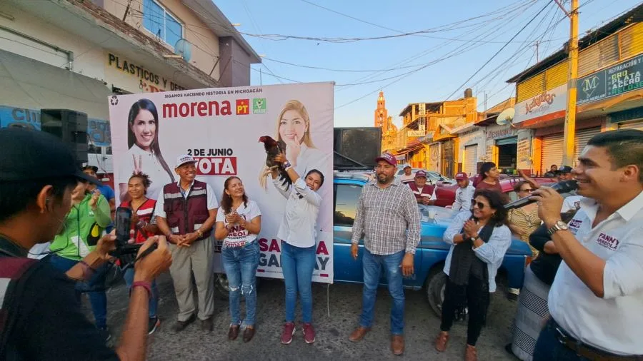 Fue durante una charla en el corazón del centro de la ciudad, que los comerciantes se reunieron con la candidata, entregaron un Gallo como señas que es su candidata y se dijeron listos para entregar las casillas ganadas, agregando que luego de que Fanny Tome posesión como alcaldesa se va a construir un mejor Apatzingán.