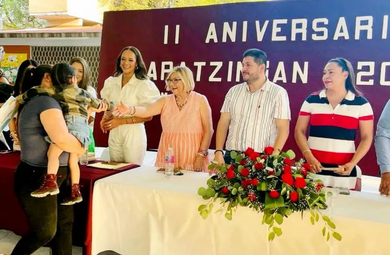 Durante la celebración de aniversario, la presidenta del Sistema DIF Municipal, Minerva Guízar, destacó que en coordinación con la presidenta estatal del DIF, Grisel Tello, en Apatzingán la guardería gratuita “Nidos” ha tenido excelentes resultados con la presencia de menos de edad que en su mayoría son hijos de jornaleras agrícolas.