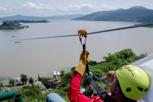 Pátzcuaro, Michoacán, 14 de julio de 2024.- Si eres de los amantes del turismo de naturaleza y aventura, ve preparándote para en estas vacaciones de verano, disfrutar de la tirolesa que se encuentra en la isla de Janitzio.