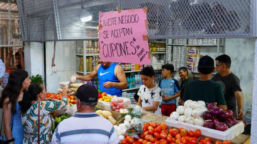 Fue el equipo Fanny Arreola, quien se dio cita en el mercado municipal, a fin de entregar estos vales para que la ciudadanía consuma productos de su despensa en los locales que resultaron afectados por el incendio que se registró el pasado mes de junio en estas instalaciones.