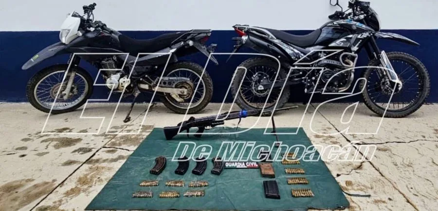 Apatzingán, Michoacán, 14 de Agosto del 2024.- Un fuerte operativo realizado la mañana de esta miércoles en la localidad de Las Colonias Cenobio Moreno dejó como saldo oficial la incautación de un fusil calibre 7.62 X 51, algunos cartuchos útiles y dos motocicletas, sin presentar ningún detenidos, aunque testigos afirman que hubo detenidos y no fueron presentados ante la autoridad competente.