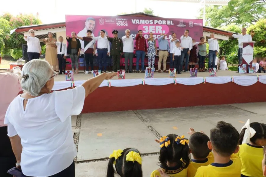 En la plaza cívica de la escuela Adolfo López Mateos, el alcalde José Abarca acompañado por el director de Servicios Educativos, Iván Santamaría, así como la diputada local electa, Sandra Garibay, rindieron honores a la bandera y dieron arranque oficial al ciclo escolar.