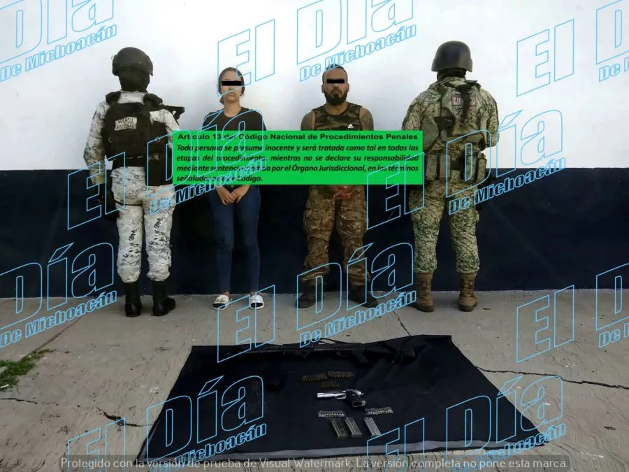 Buenavista, Michoacán, 8 de Septiembre del 2024.- En un operativo interinstitucional en la localidad de el veinticinco del municipio de Buenavista se detuvo de una pareja con armas, entre las que se encontraba una persona de nacionalidad colombiana.