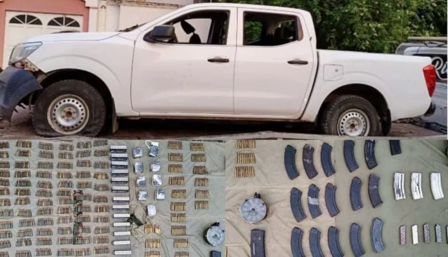 Al interior de la camioneta se localizaron los cartuchos útiles y cargadores de distintos calibres, así como tres mochilas tácticas. Una vez realizadas las actuaciones respectivas, lo asegurado fue presentado ante la autoridad competente para llevar a cabo las indagatorias que establece la ley.