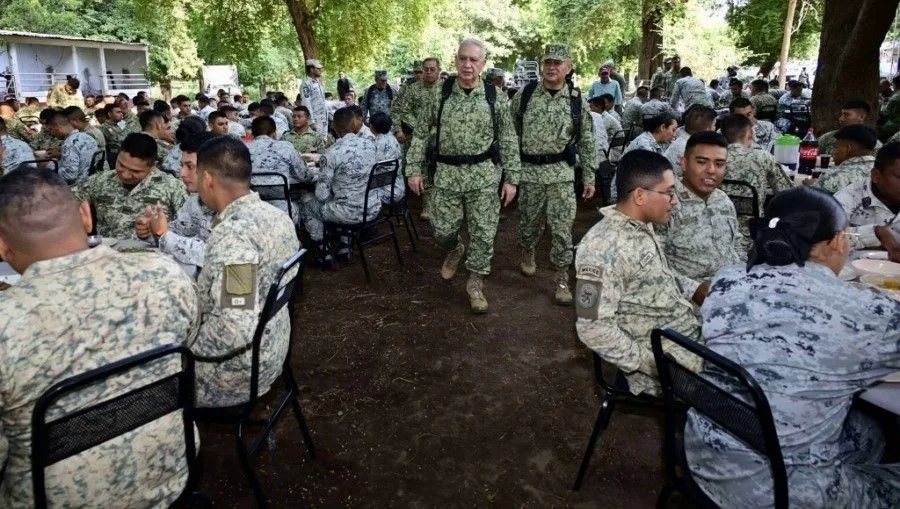 A través de las redes sociales, la Sedena dijo que el general Trevilla Trejo convivió con las tropas desplegadas en el área, con el fin de motivar y felicitar a su personal por el trabajo que realizan en favor de la población y el sector citrícola.