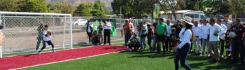 Alfredo Bedolla y Fanny Arreola, Inauguran cancha de futbol 7 en la colonia La Pradera de Apatzingán