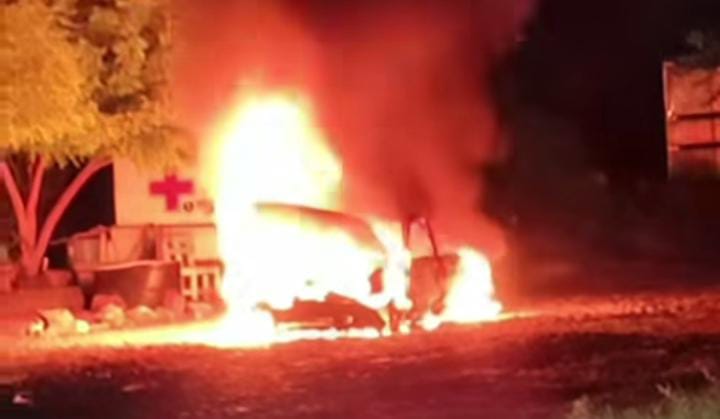 Múgica, Michoacán, 28 de Septiembre de 2025. – Un cortocircuito en el cableado eléctrico de un automóvil Nissan Tsuru provocó un incendio de grandes proporciones que terminó por consumir completamente el vehículo, el cual fue declarado pérdida total. El siniestro movilizó a los cuerpos de emergencia la noche del pasado domingo.