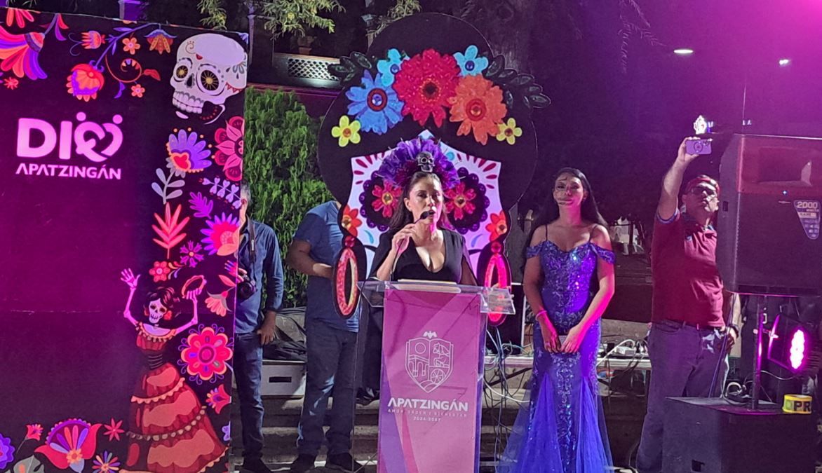 Apatzingán, Michoacán, 30 de Octubre de 2025. – En el marco del evento «El Encendido de la Catrina», la presencia de Fanny Arreola realzó una noche dedicada a las tradiciones de Día de Muertos, donde el Grupo Apatzí ofreció una destacada presentación de danza folclórica.