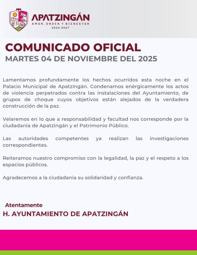 Destaca que ninguna autoridad previo disturbios pese a que estos fueron convocados y en esta ya vislumbraban que abría disturbios, pero el municipio carece de operadores políticos que prevean de manera preventiva actos como estos, ni la oficina de prevención del delito en Apatzingán, ni el área de protección civil o de seguridad pública municipal anticiparon hechos vandálicos.