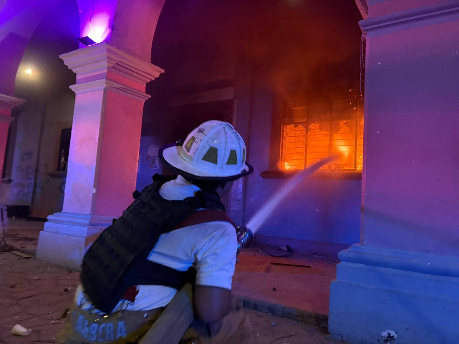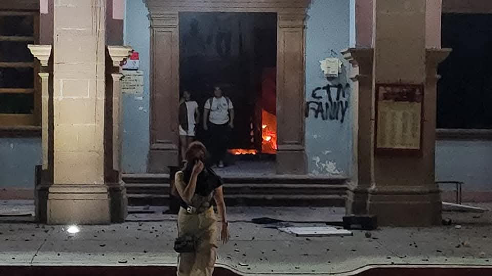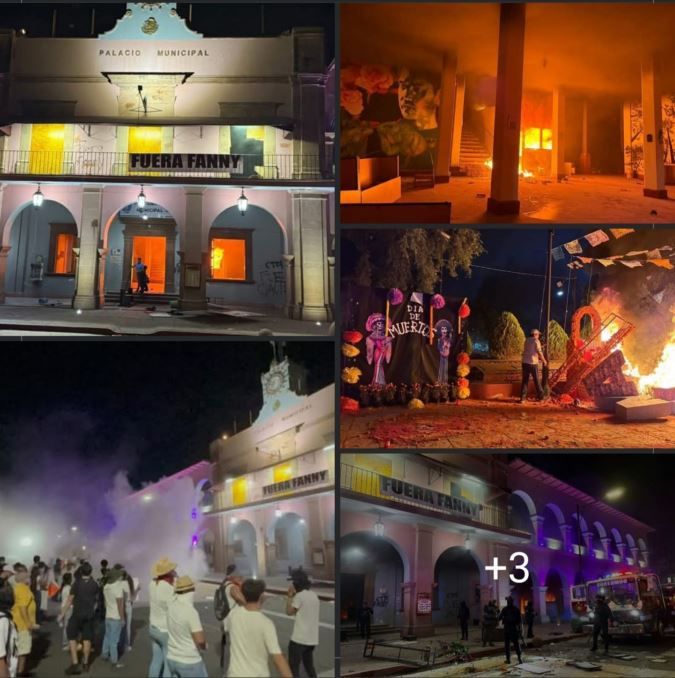 Lo que inicialmente fue una marcha pacífica se transformó en actos de vandalismo e incendio del palacio municipal. Además, la Plaza Constituyentes también fue objeto de vandalismo, con incendios de altares del Día de Muertos y destrozos en el mobiliario urbano.