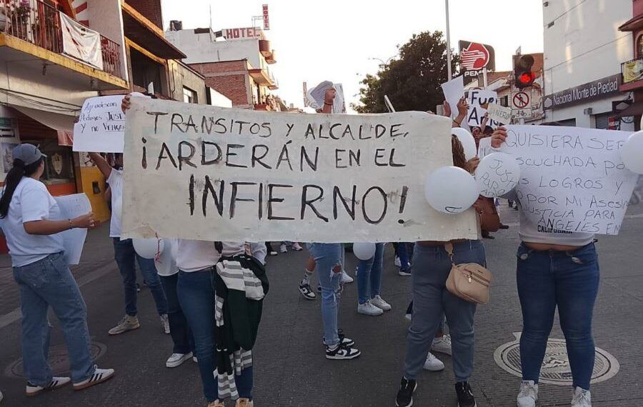Zitácuaro, Michoacán, Miércoles 10 de diciembre de 2025.- Derivado del asesinato de la joven Ángeles Esquivel, de 24 años de edad, ocurrido el pasado domingo 7 de diciembre en la colonia Infonavit y en el que está presuntamente implicado un oficial de Tránsito Municipal de Zitácuaro, un grupo de manifestantes salió a las calles de la ciudad para exigir justicia y, durante la acción, quemaron el árbol navideño ubicado en la Plaza Cívica Benito Juárez.