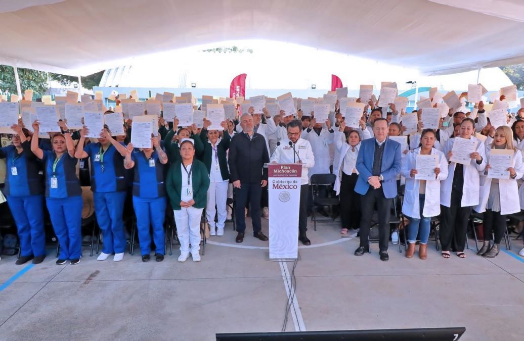 El gobernador Ramírez Bedolla calificó el acto como un reconocimiento a la vocación del personal de salud y destacó el respaldo de la presidenta Claudia Sheinbaum al plan.