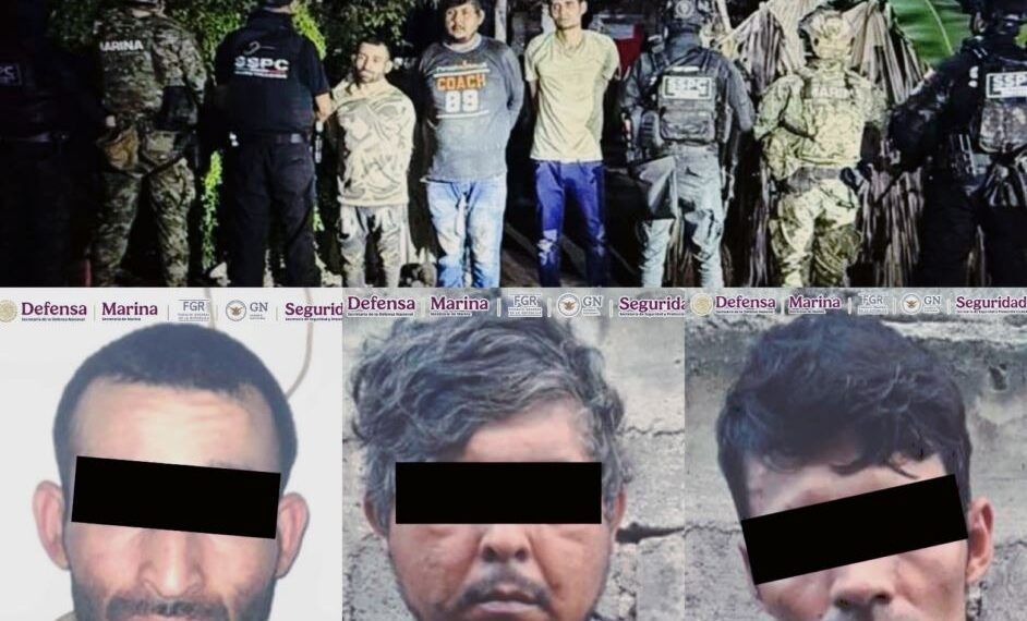El secretario de Seguridad, Omar García Harfuch, reveló que los delincuentes, de 30, 32 y 35 años, extorsionaban y amenazaban a los citricultores desde una localidad de Apatzingán donde Fueron capturados en un operativo conjunto tras intensos trabajos de inteligencia.