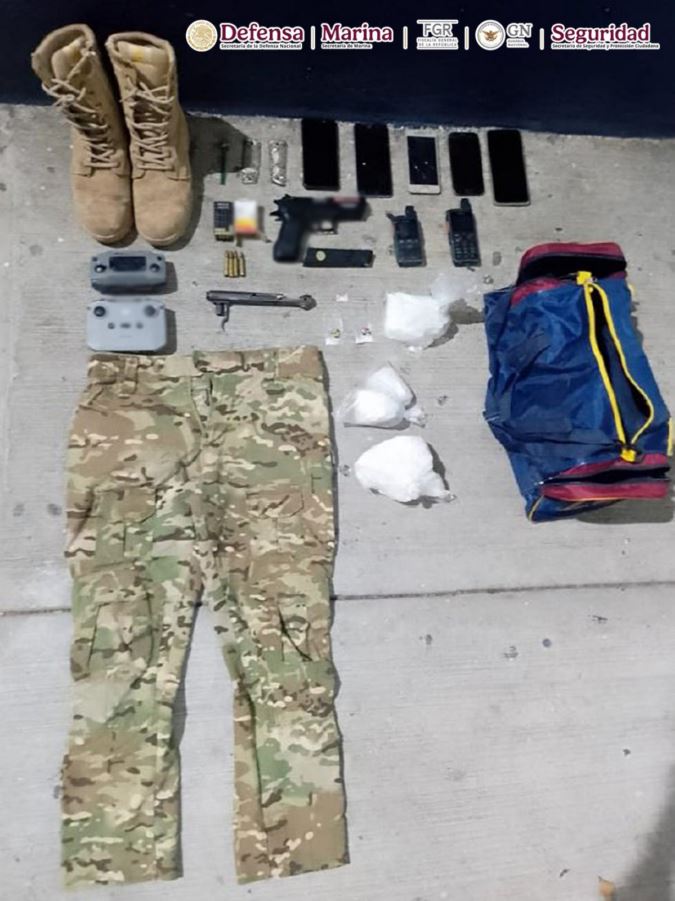 Un informe dice que lo asegurado contrasta con el informe policial y que entre lo asegurado a los detenidos hay: controles para drones, un arma artesanal, 14 cartuchos útiles, piezas de armas de fuego y tres bolsas con droga, evidenciando y contrastando el alto poder de fuego y sofisticación de los detenidos.