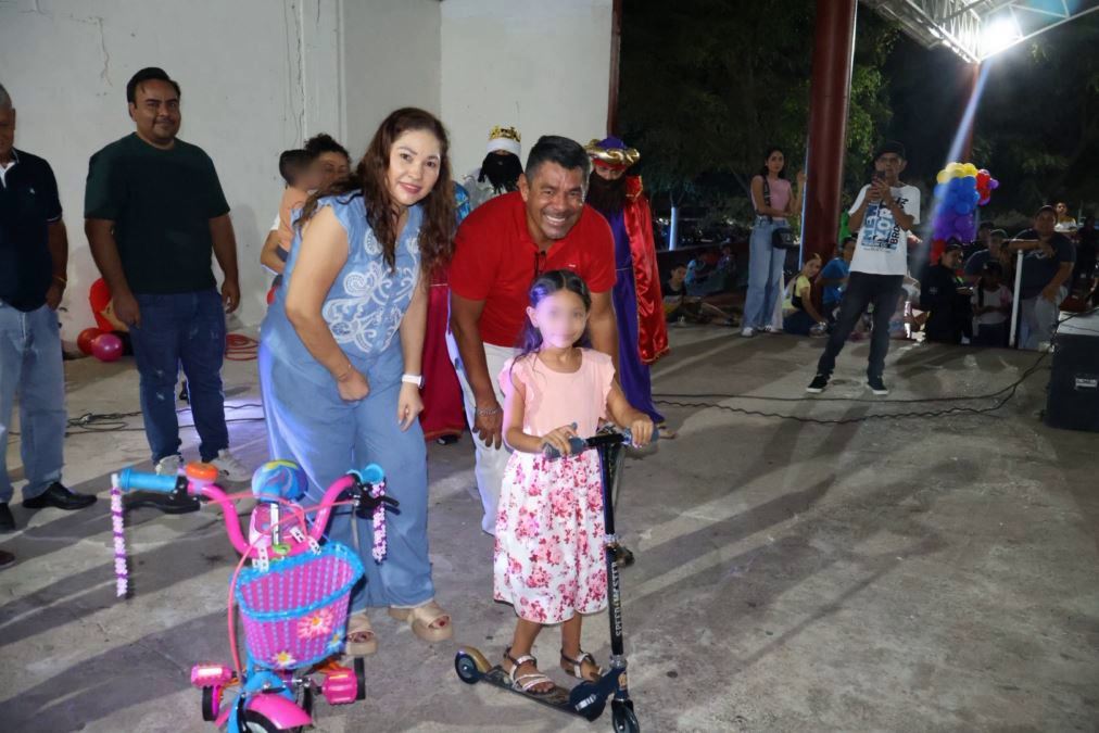 La transformación en la acción gubernamental continuó en Pinzándaro, donde el Festival de Día de Reyes replicó un ambiente de alegría y participación directa. Ahí, Moreno Mendoza, junto con integrantes del Cabildo, se integró a la convivencia, supervisando personalmente la entrega de juguetes y disfrutando de las actividades recreativas junto a los niños y sus familias.