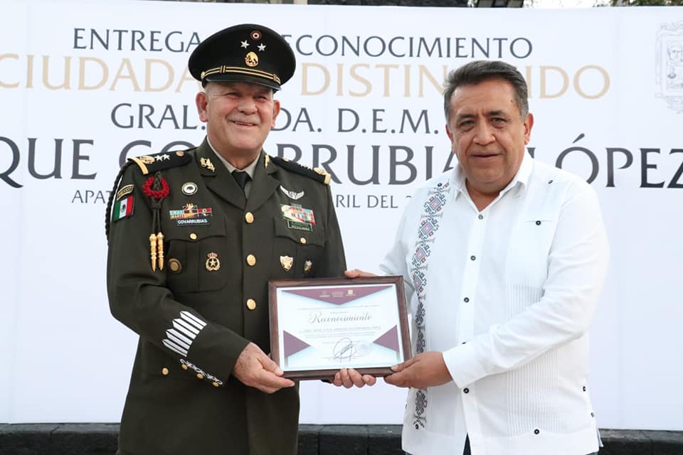 La culminación de su servicio activo destaca uno de los reconocimientos civiles más significativos para un militar: fue investido como Hijo Predilecto de Apatzingán en abril de 2023. Este honor, otorgado durante su período como Comandante de la 43/a. Zona Militar en esta ciudad, es un testimonio elocuente de su integración, liderazgo y servicio excepcional a la comunidad. Su trayectoria también incluyó el mando de la XII Región Militar, en Irapuato, Guanajuato.