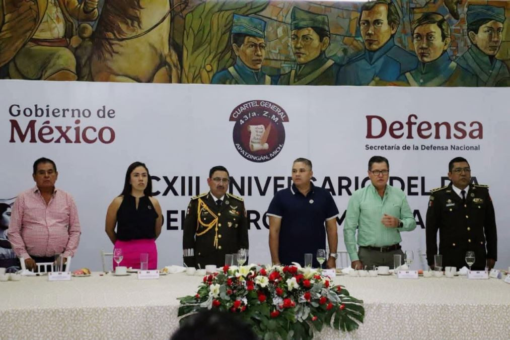 El campo militar vibró con la presencia de presidentes municipales de la región, entre ellos la anfitriona, licenciada Fanny Areola Pichardo, y representantes de localidades como Gabriel Zamora, Nueva Italia, Churumuco y Múgica, quienes se dieron cita para rendir tributo a la institución más querida por los mexicanos.
