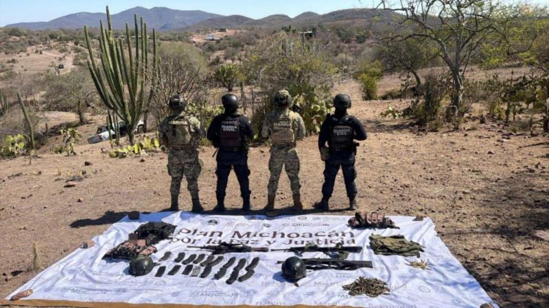 Arteaga, Michoacán, 20 de febrero de 2026.– En una movilización digna de una película de acción, la Fuerza de Tarea conjunta entre la Secretaría de Seguridad Pública (SSP) y elementos de la Marina logró desarticular un presunto campamento de delincuentes en las intrincadas brechas de la localidad de Toluquilla. El resultado: un golpe demoledor a la delincuencia.