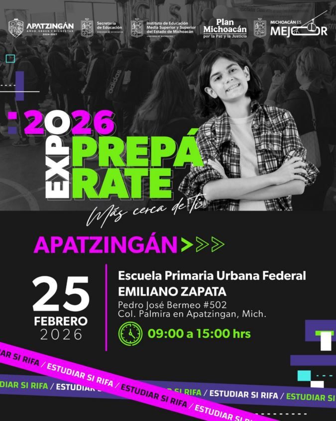 Apatzingán, Michoacán, 24 de Febrero de 2026.- En una muestra contundente de trabajo coordinado y visión de futuro, la Secretaría de Educación en el Estado (SEE) , en sinergia con el Gobierno de Apatzingán que encabeza la Presidenta Municipal, Fanny Arreola Pichardo, han unido fuerzas para detonar el futuro académico de la región. El resultado es la llegada de la EXPO PREPÁRATE 2026, un evento masivo que se perfila como la plataforma más importante para que los jóvenes definan su camino profesional.