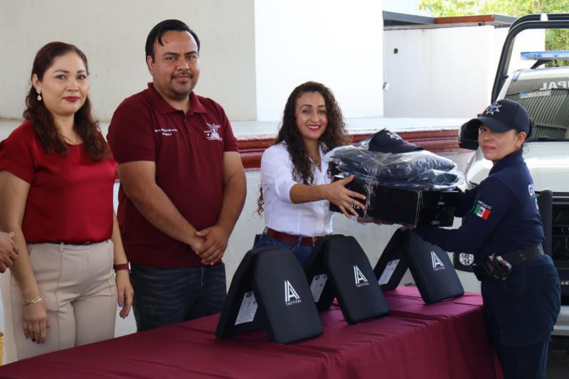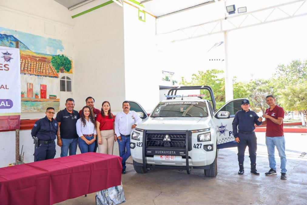 Buenavista, Michoacán, 23 de Marzo de 2026.- En un hecho que enmarca el compromiso de protección de los bonavistenses, la presidenta municipal, Irma Moreno Mendoza, en conjunto con el cabildo, realizó una entrega sin precedentes para reforzar la seguridad en Buenavista. En una ceremonia que evidenció el trabajo transformador de la administración, se hizo entrega de equipo táctico de última generación, uniformes y unidades vehiculares a los elementos de Seguridad Pública.