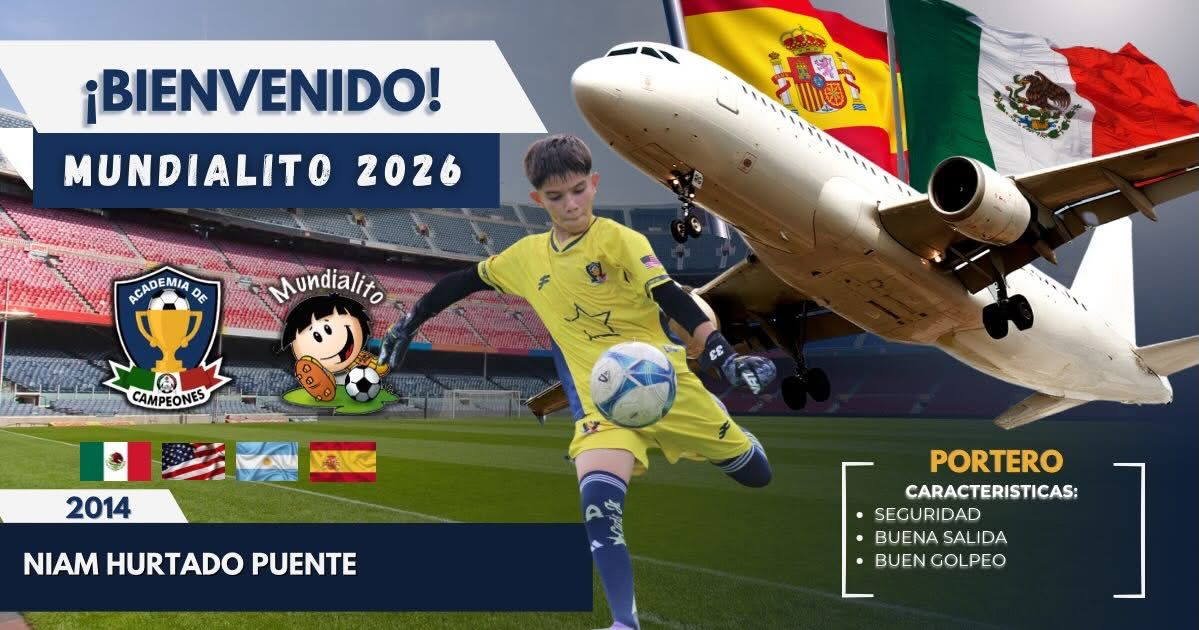 Lombardía, Michoacán, 4 de Abril del 2026.- La participación de NIAM HURTADO PUENTE, JOVEN PORTERO ORIGINARIO DE LOMBARDÍA MICHOACÁN, MÉXICO llegó a su fin en el Mundialito 2026 celebrado en tierras españolas, dejando una huella imborrable defendiendo los colores de la selección mexicana categoría 2014 ante Italia, Australia, Estados Unidos y España.
