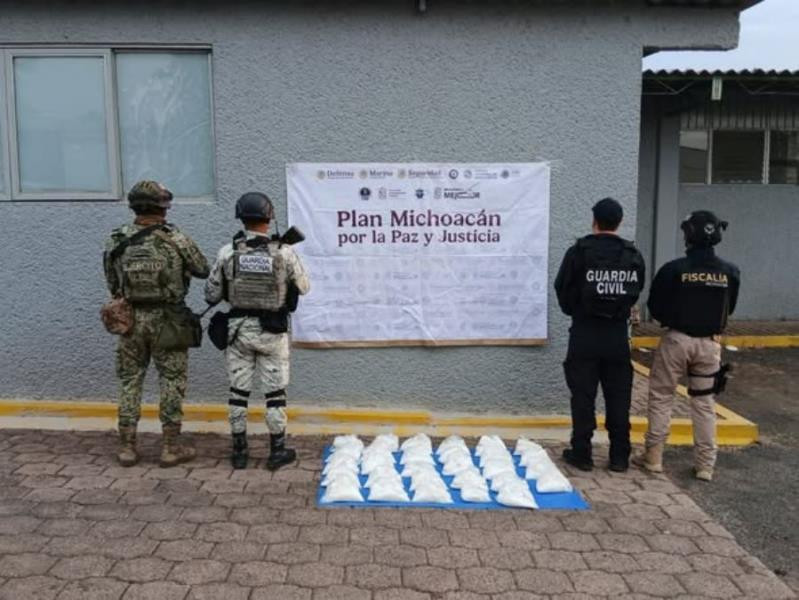 Morelia, Michoacán, 15 de abril de 2026.– En un operativo conjunto entre las secretarías de Seguridad Pública (SSP), de la Defensa Nacional (Defensa), la Guardia Nacional (GN) y la Fiscalía General del Estado (FGE), fueron asegurados aproximadamente 40 kilogramos de metanfetamina.