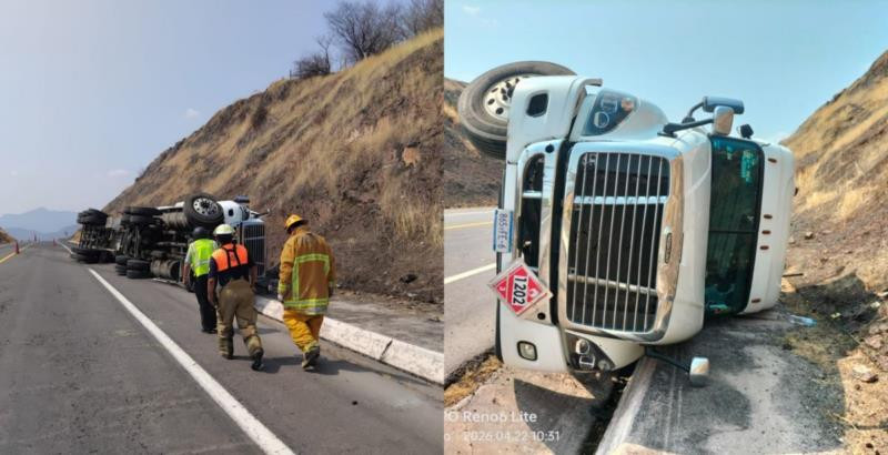 El derrame de diésel fue reportado por las autoridades de Protección Civil Michoacán, quienes informaron que el incidente involucró un camión que, debido a un accidente, volcó en el costado de la carretera, derramando una gran cantidad de diésel desde su domo.